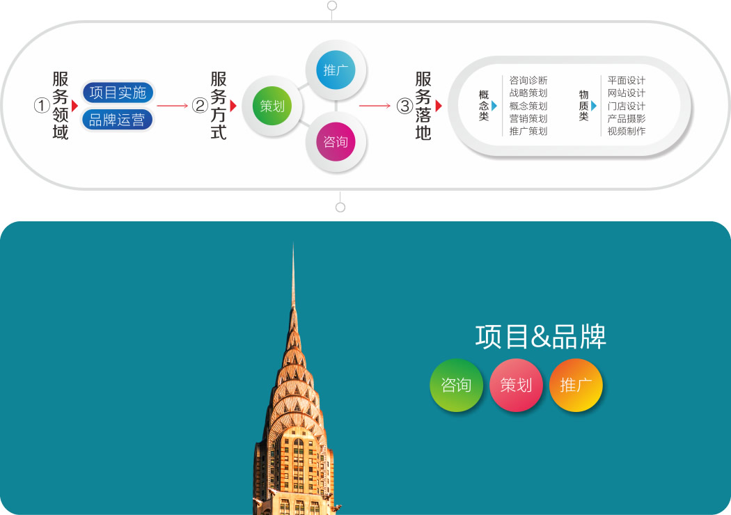 項(xiàng)目取名、可研分析報(bào)告、商業(yè)計(jì)劃書、項(xiàng)目全程策劃、營銷診斷、項(xiàng)目營銷推廣、營銷事件策劃、媒體資源整合。